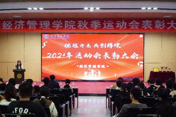 赛场挥汗展风采,总结蓄力再出发。在2025年校秋季运动会圆满落幕后,经济管理学院学子凭借奋勇拼搏斩获多项荣誉,尽显集体凝聚力与战斗力。为系统复盘赛事经验、传承体育精神、凝聚师生奋进力量,经济管理学院于2025 年10 月31 日中午,在成学楼106 报告厅举行运动会总结表彰大会。党总支书记王慧娟、党总支副书记乔松、分团委书记刘诗韵及全体辅导员出席会议。