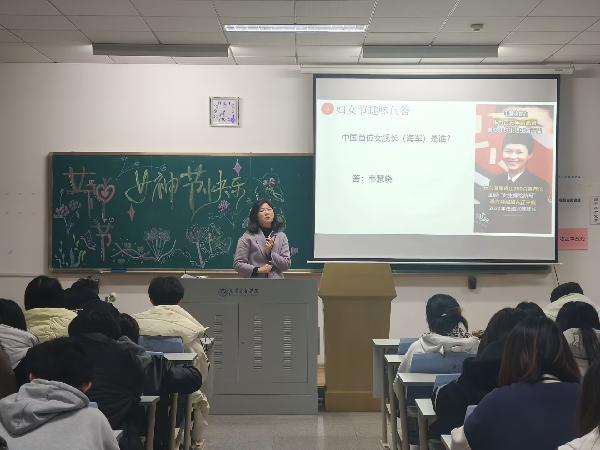 本次主题教育活动以互动问答形式拉开序幕。刘诗韵老师围绕妇女节的由来、巾帼模范事迹等内容,与同学们进行了深入交流和分享。从深耕妇产科领域、留下八千余份珍贵病历、成功开展国内首例新生儿溶血症换血手术,用一生守护母婴健康的“万婴之母”林巧稚;到以笔墨抒怀、留千古名句的历代才女;再到以200页自荐信立志“嫁给航母”、勇毅追梦成为中国首位女舰长的韦慧晓,一位位在不同领域坚守初心、发光发热的女性榜样被生动讲述。她们以坚守与担当、智慧与勇气,生动诠释了女性的无限可能,让在场同学深受触动,真切感悟到“她力量”在时代发展中的璀璨光芒,更深刻认识到:巾帼榜样身上的奋斗与坚守精神,不分性别,皆是值得全体同学学习的时代底色。
