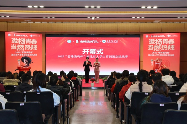 11月22日,由经济管理学院、湖北农业现代化与农村发展研究中心联合承办,以“激扬青春,当然热辣”为主题的2025年“老韩煸鸡杯”湖北省大学生营销策划挑战赛决赛在成学楼106报告厅举行。本次大赛由湖北省市场营销学会主办,老韩煸鸡品牌冠名支持。从全省35所高校462支参赛队伍脱颖而出的18支优秀团队进入决赛。来自湖北省社科联、湖北省市场营销学会、老韩煸鸡及其他企业的嘉宾、特邀评委和参赛团队师生200余人参加。开幕式上,校长李崇光教授、老韩煸鸡品牌联合创始人兼CEO韩吉星、湖北省社科联学会工作部主任陈弘、湖北省市场营销学会会长常亚平教授先后致辞。