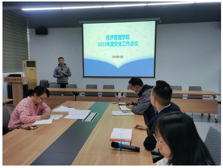 10月25日下午,经济管理学院召开2023年度安全工作会议,传达学校安全会议精神,对学院安全工作进行布置,党总支书记陈佃生主持本次会议,全院教职工参加本次会议。