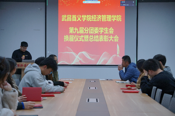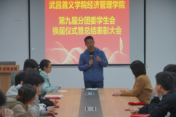 2023年12月8日下午,经济管理学院第九届分团委学生会换届仪式暨总结表彰大会在院办104教室顺利召开。学院党总支书记陈佃生,副书记王慧娟,分团委书记刘诗韵老师、第九届分团委学生会全体成员以及第八届分团委学生会优秀代表欢聚一堂,共同见证了第九届分团委学生会的成立,同时对过去一年的工作进行了总结和表彰。