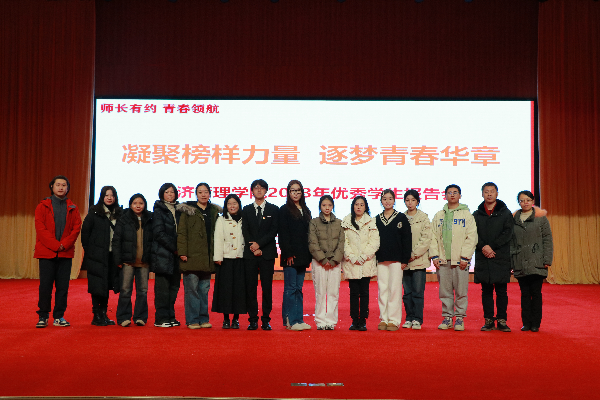 为深入学习贯彻习近平新时代中国特色社会主义思想,扎实落实习近平总书记关于青年工作的重要思想,紧紧围绕立德树人根本任务,教育引导广大青年向榜样看齐,勤奋学习、积极进取,12月20日下午6点,经济管理学院师生相聚于嘉鱼校区首义礼堂,召开“师长有约、青春领航”系列活动暨2023年“凝聚榜样力量 逐梦青春华章”优秀学生报告会。经管学院党总支书记陈佃生,分团委书记刘诗韵,嘉鱼校区辅导员老师出席本次大会,嘉鱼校区经管学院全体学生共同参与。本次报告会由经管院党总支副书记王慧娟主持。