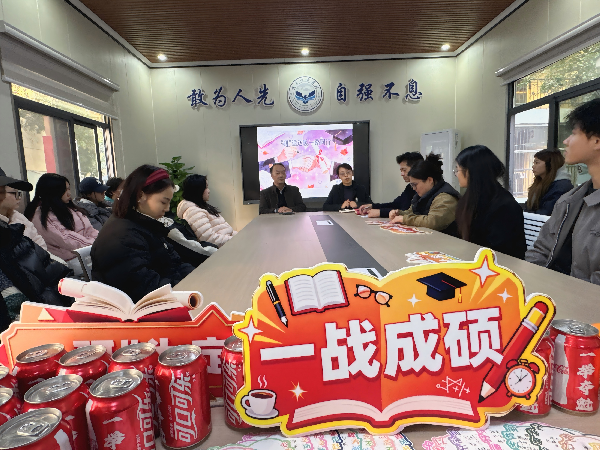 王慧娟与同学们交流备考情况,解答疑问、提振信心。她强调,考研是拓展人生可能的重要阶段,学院已构建从经验分享、备考赋能到复试辅导的全链条支持体系,全程陪伴学生备考。她提醒同学们把握知识脉络,沉着应对考题,保持积极心态,自信步入考场。现场摆放的“一战成硕”“等你上岸”等祝福标语,传递着学院的殷切期望。