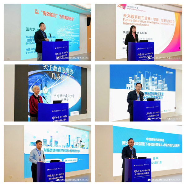 主旨演讲环节,专家学者围绕“AI+市场营销教育”“数智化教学改革”“新文科背景下的人才培养”等作报告。华中科技大学田志龙教授提出“以有效输出为导向的教学”,主张通过项目式任务、移动课堂、系统化案例和真实性学习,让学生在做中学、以用促学;香港城市大学李娟教授以“未来教育的三重奏:智能、创新与国际合作”为题,提出以智能、创新、国际化三轮驱动未来教育;中南财经政法大学万后芬教授围绕“教育强国”强调要在思想认识、教学设计和教学实践上实现“三个大提升”;湖南大学杨智教授系统介绍了数智时代市场营销专业建设的“湖大样本”;山东财经大学毕继东教授分享财经类课程教学创新大赛的实践经验,倡导以赛促教、以赛促改;华中农业大学副校长青平教授则从新文科建设出发,提出在加强人文底蕴、突出数智特征、强化实践导向和服务国家战略等方面协同发力,培养具有家国情怀、全球视野与数智能力的经管人才。