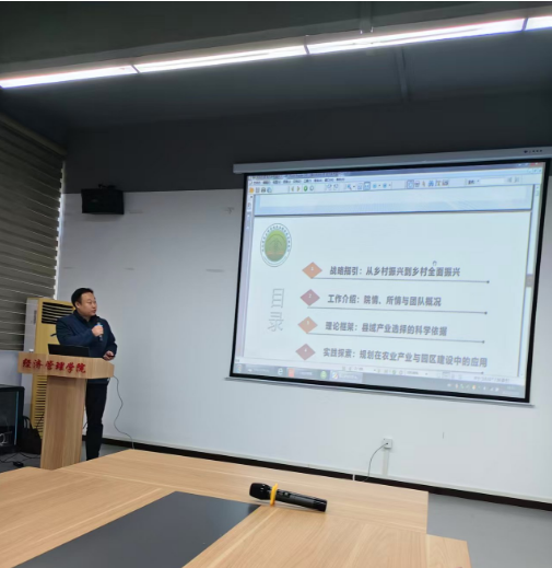 中心主任李林教授对陈杰博士的学术背景与实践成果作了简要介绍,重点强调其在农业规划与咨询、农业经济政策等领域的丰富经验与突出贡献。陈杰博士围绕乡村振兴中规划引领的核心作用展开系统讲解。他强调,习近平总书记指出,推进中国式现代化必须坚持不懈夯实农业基础,全面推进乡村振兴。面对国内外新形势、新挑战,强化农业农村规划、提升政策研判与决策水平,对加快建设农业强国具有重要意义。在介绍湖北省农科院农业经济技术研究所的工作时,陈杰博士重点展示了其团队在“十四五”以来承担的多项省级与地方农业规划项目,涵盖产业发展规划、园区规划、实施方案、咨询评估等多个类型。他以咸丰县曲江镇高山羊村、来凤县大河镇白果树村、宜城市金山村现代农业综合体、太平村农文旅研学基地等具体案例,生动阐释了如何立足资源禀赋、破解发展瓶颈,通过“基础先行、模式驱动、主体激活”等路径,推动农业产业生态化、特色化、融合化发展。 在理论层面,陈博士还深入讲解了县域农业产业选择的依据、产业布局与县域经济发展的关系,以及打造全产业链、培育市场主体、推动标准化建设、发展特色农业、构建农产品品牌等关键任务,为在座师生提供了从理论到实践的系统认知。